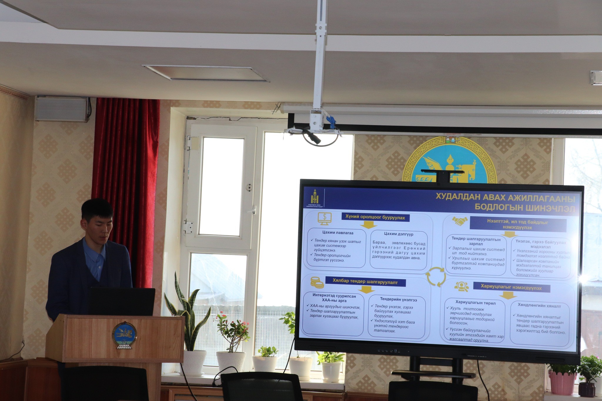 “Төрийн болон орон нутгийн өмчийн хөрөнгөөр бараа, ажил, үйлчилгээ худалдан авах тухай хуулийн шинэчилсэн найруулга” хэлэлцүүлэг Орхон аймагт 2025.02.25-ны өдөр зохион байгуулагдлаа.