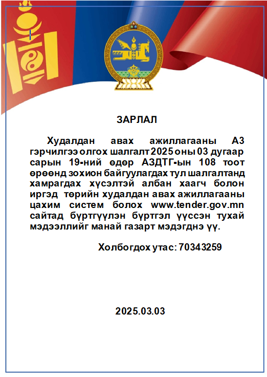 АЙМГИЙН ЗАСАГ ДАРГАТАЙ 2025 ОНД ХАМТРАН АЖИЛЛАХ ГЭРЭЭ БАЙГУУЛЛАА