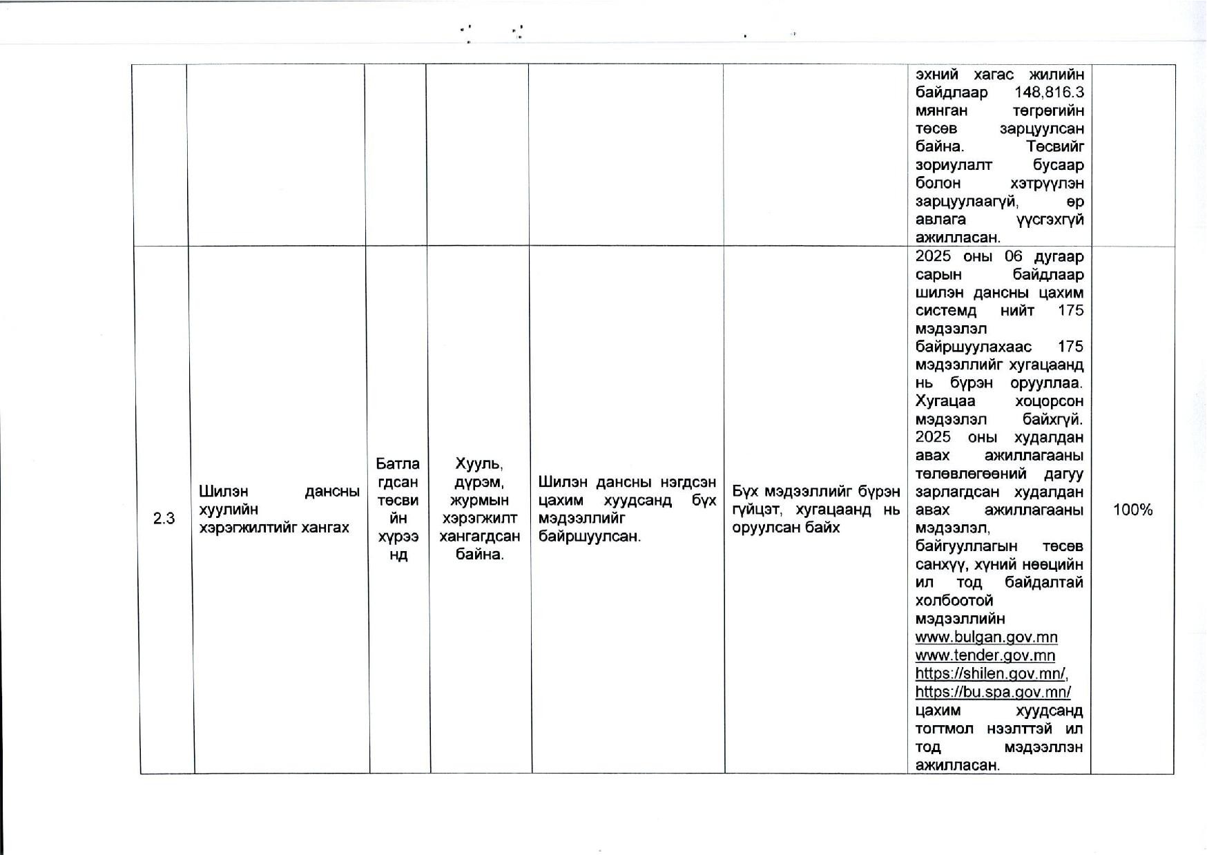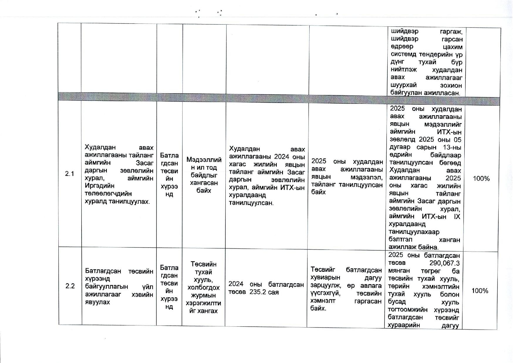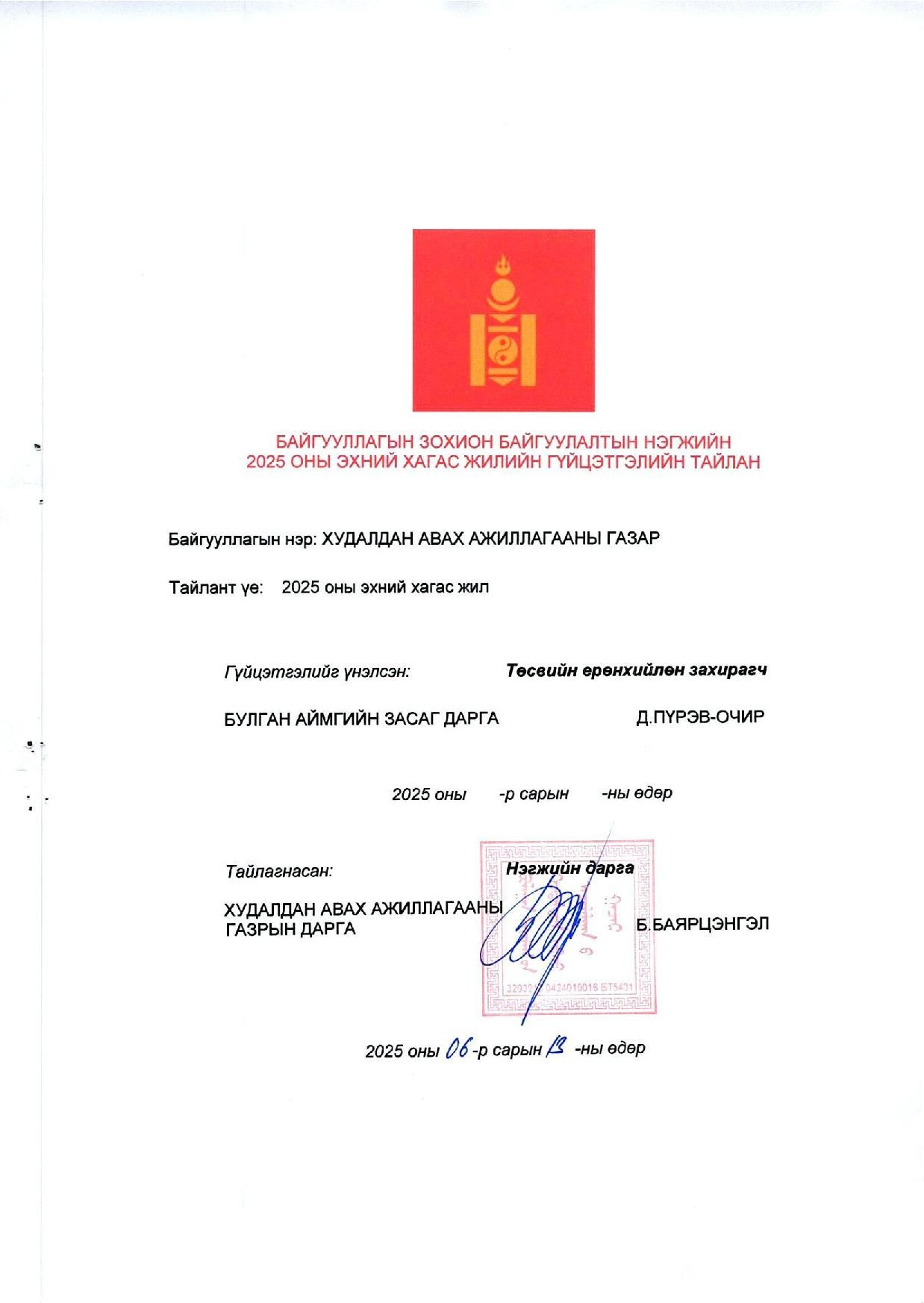 2025 оны эхний хагас жилийн гүйцэтгэлийн тайлан