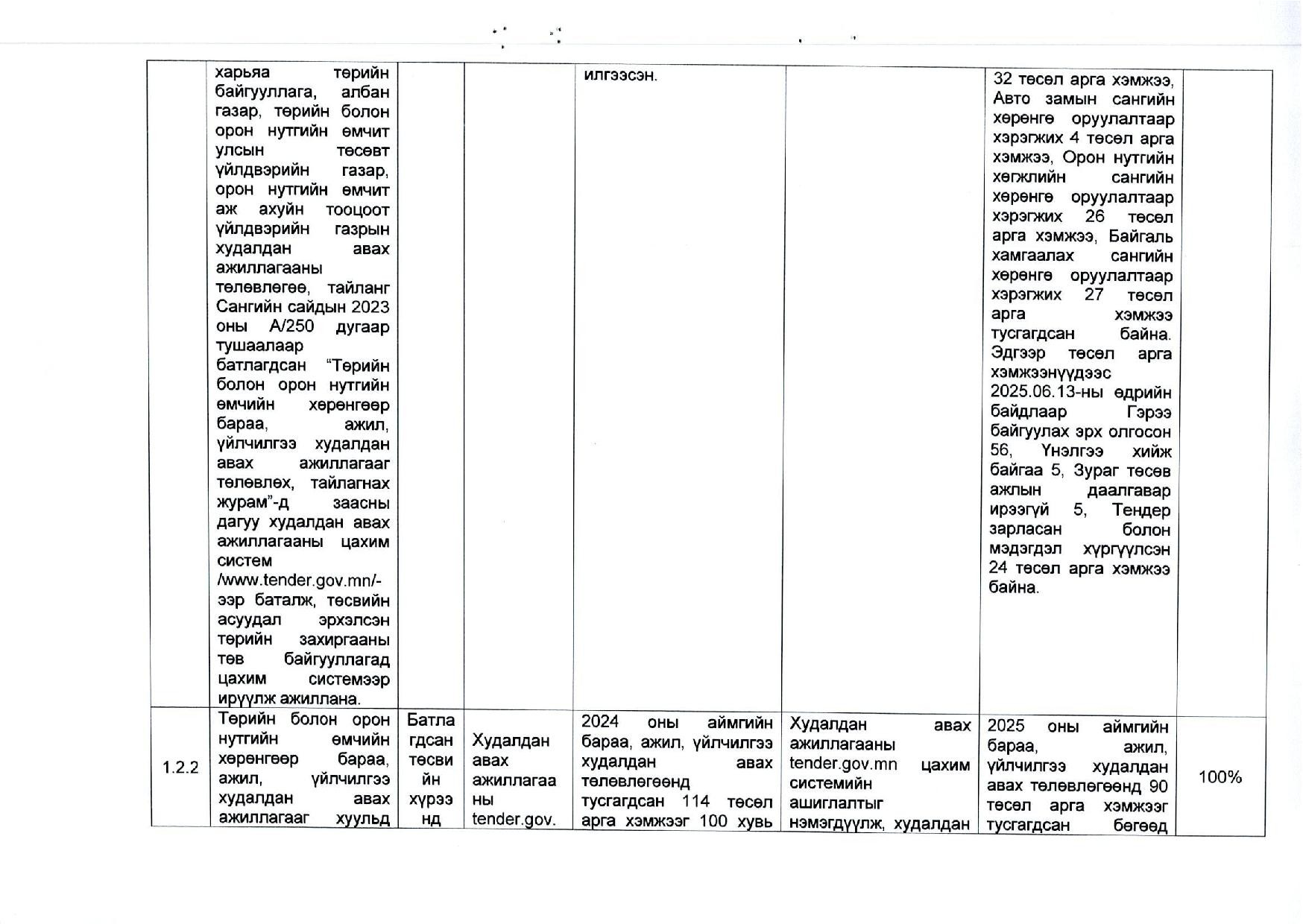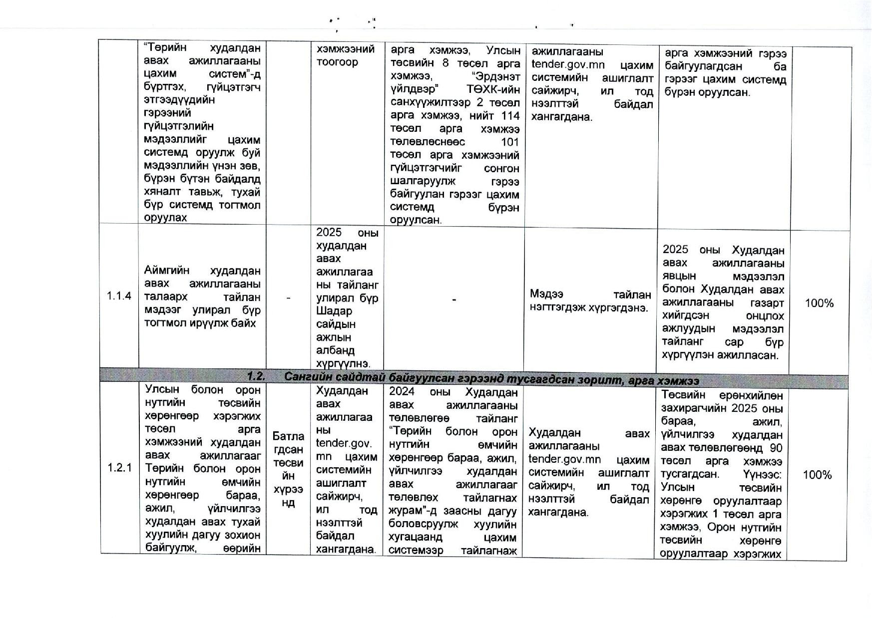Худалдан авах ажиллагааны төлөвлөгөөний гүйцэтгэл