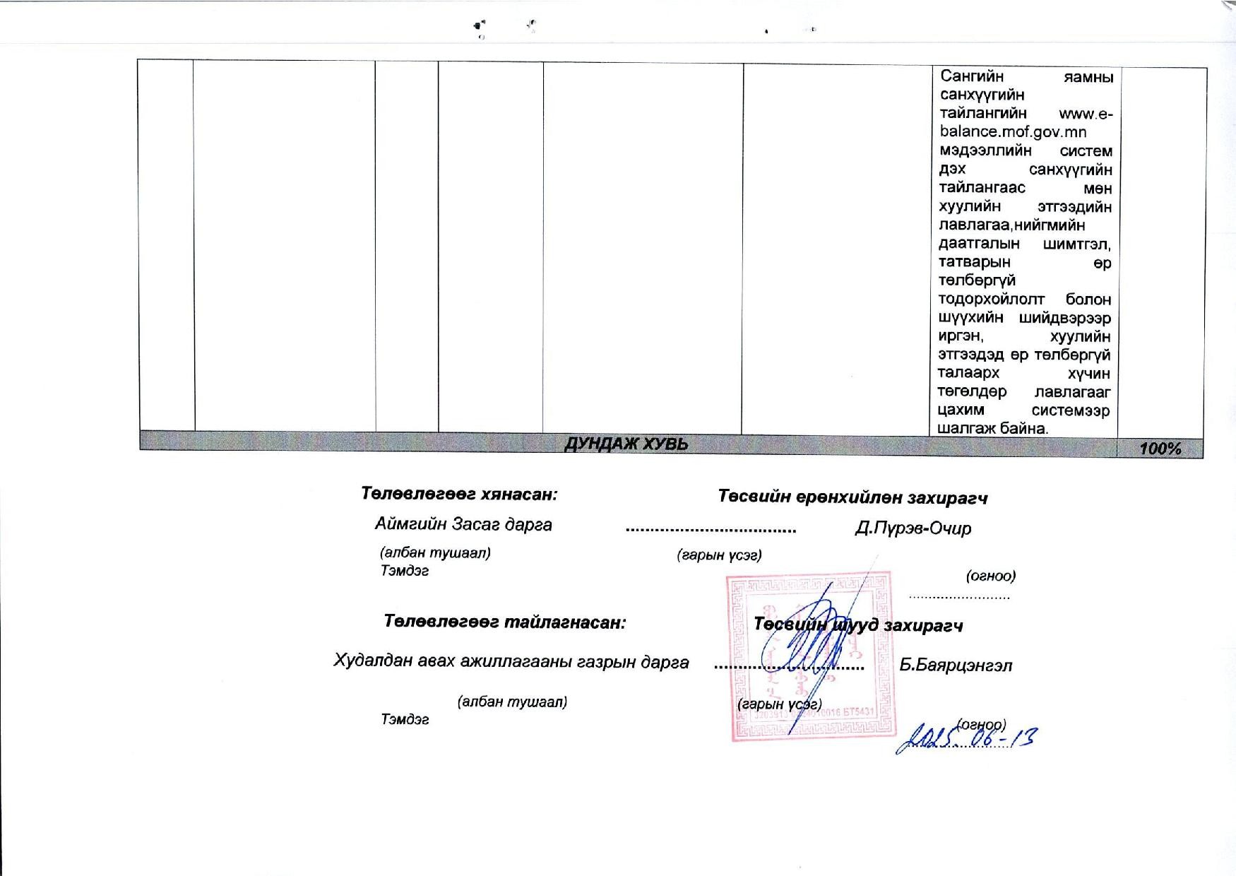 Төсвийн гүйцэтгэлийн биелэлт болон хагас, бүтэн жилийн санхүүгийн тайлан