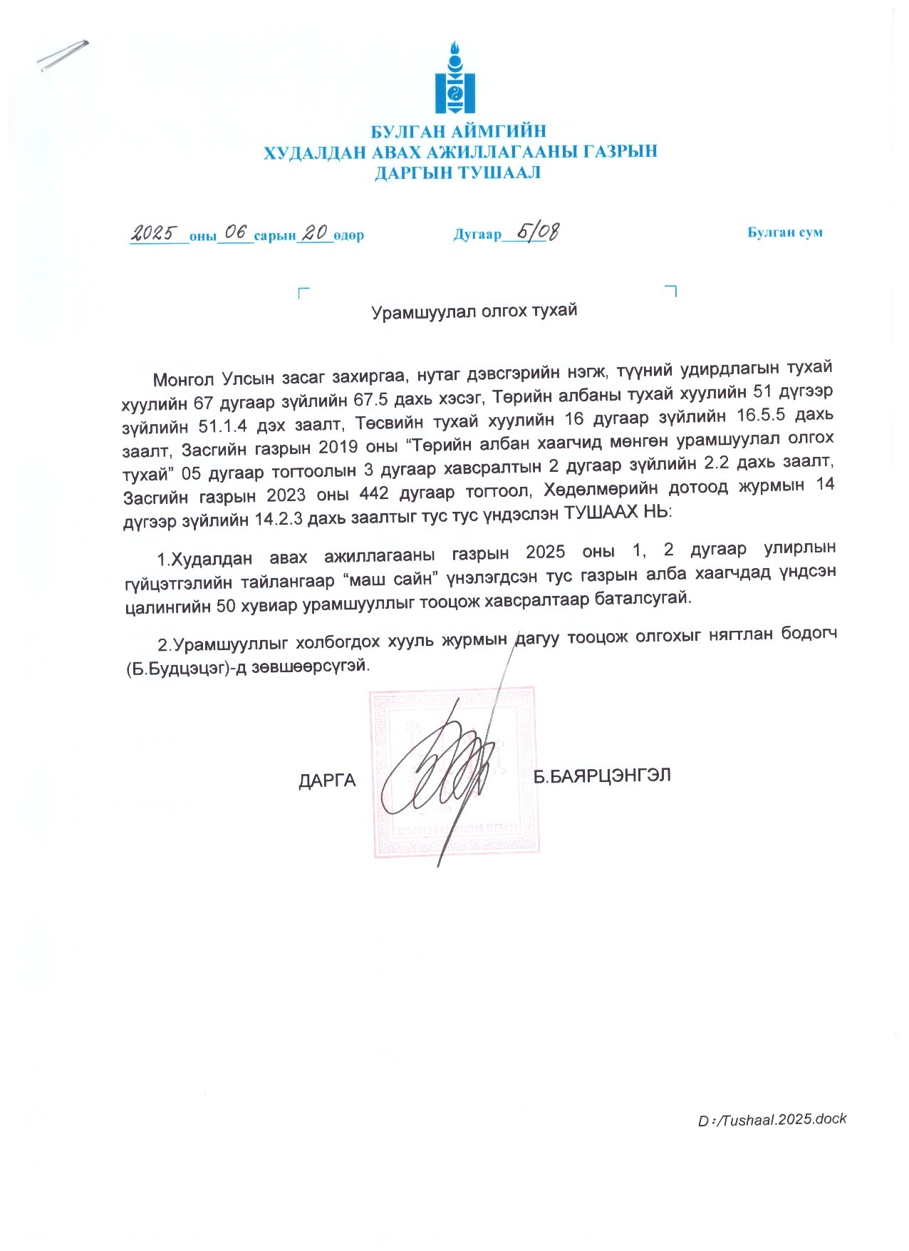 Тендерт шалгарсан оролцогч болон үр дүнгийн мэдээ