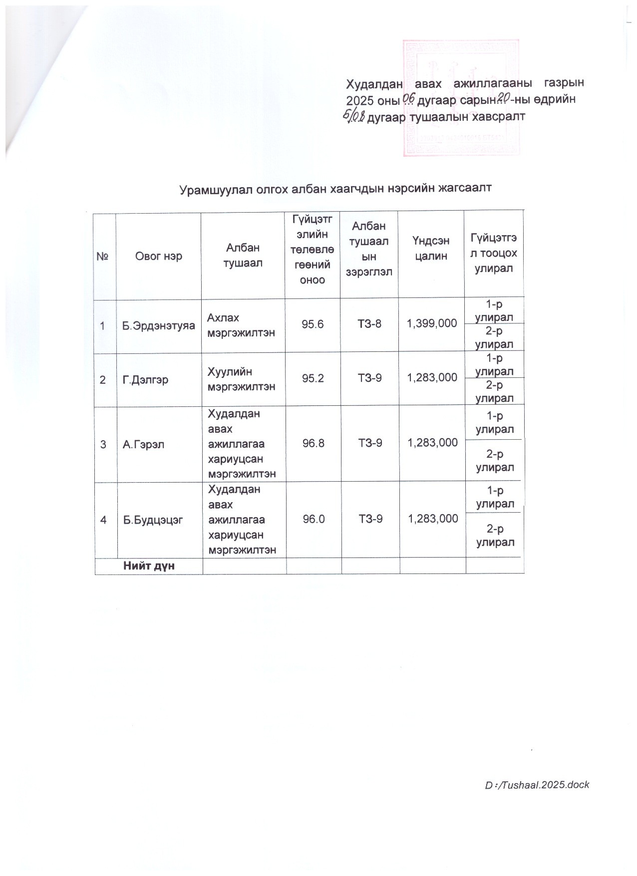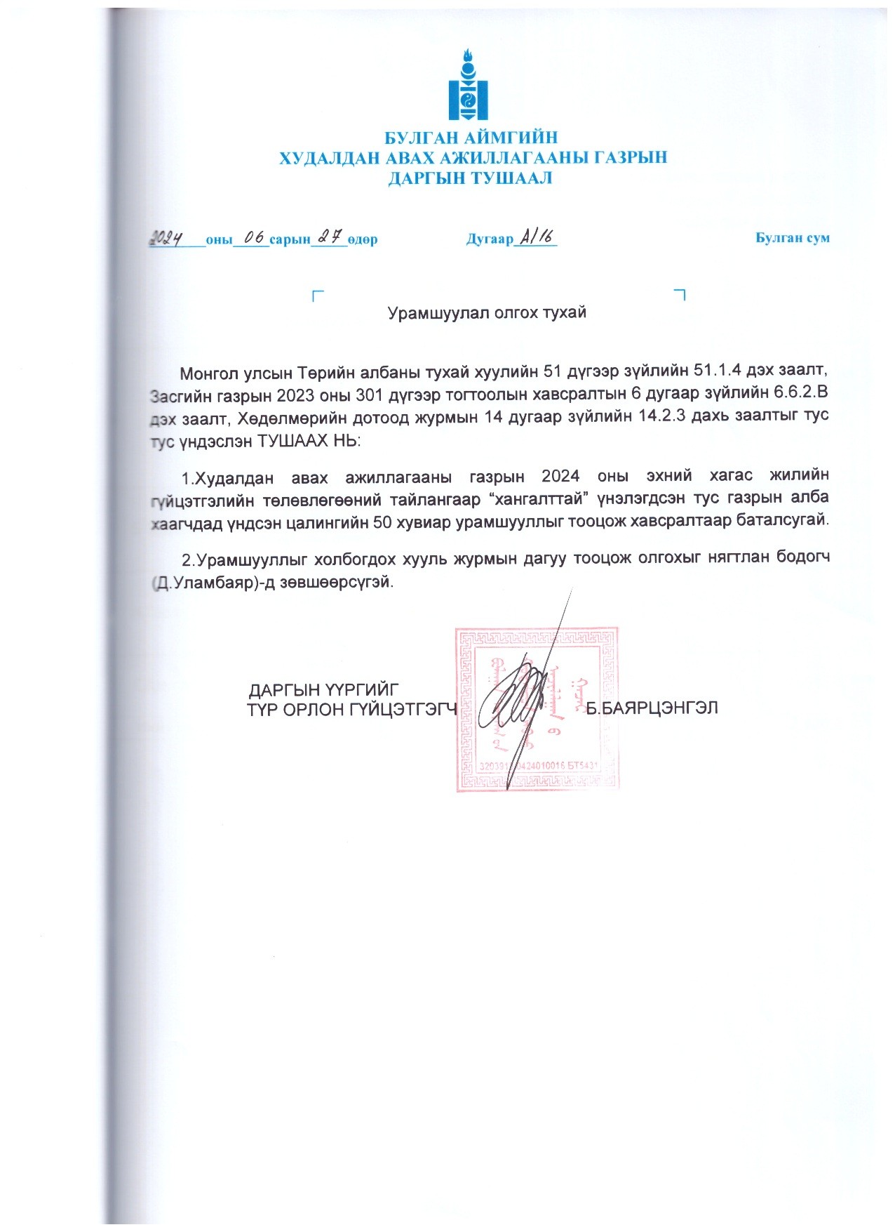 Тендерт шалгарсан оролцогч болон үр дүнгийн мэдээ